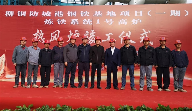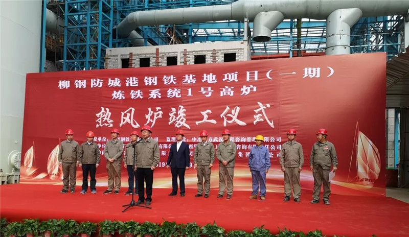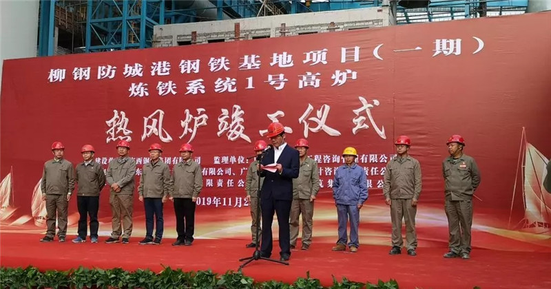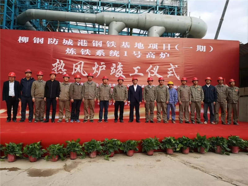 20191129日,柳鋼防城港鋼鐵基地煉鐵系統1#高爐熱風爐舉行竣工儀式。山冶設計董事長魏新民、副總經理宋志順出席了竣工儀式,同時出席竣工儀式的還有柳鋼集團總經理甘貴平,柳鋼集團副總經理、廣西鋼鐵黨委書記、董事長閻駿,廣西華銳鋼鐵工程設計咨詢有限責任公司副總經理、總工程師吳建霖,十一冶建設集團有限責任公司總經理何權等相關人員。