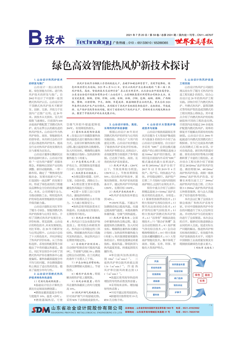 改進型頂燃式熱風爐十大特色技術(shù)